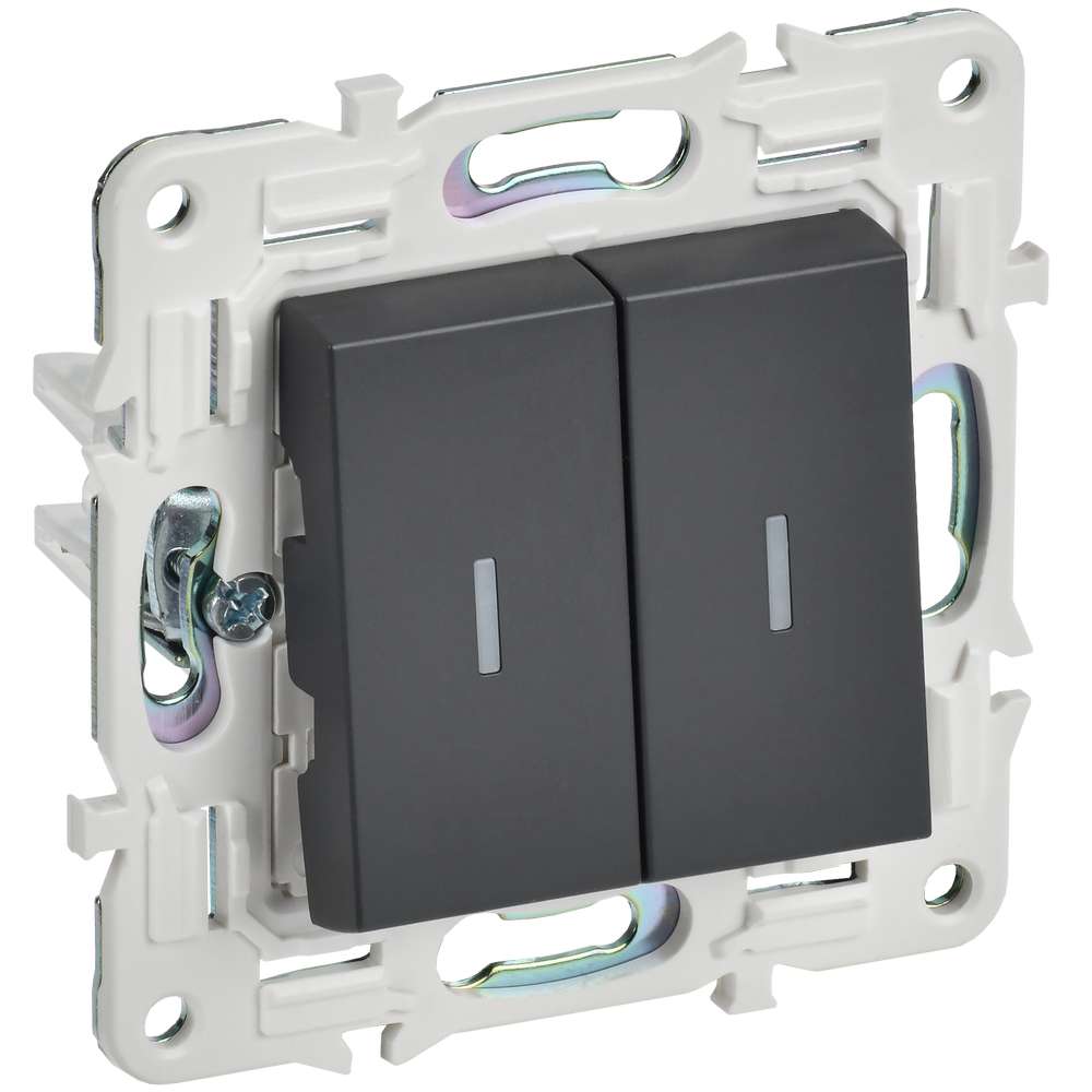 SKANDY Выключатель 2-клавишный проходной с индикацией 10А SK-V10T титан IEK SK-V22-1-10-K48, купить в Минске по самой низкой цене